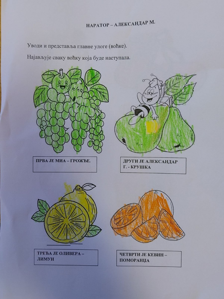 Zatim su zajednički rešavali ukrštenicu, odgovarali na pitanja. Svaki učenik je pamtio slovo na koje počinje ili se završava dati odgovor. Konačno rešenje je glasilo: voćni dan.