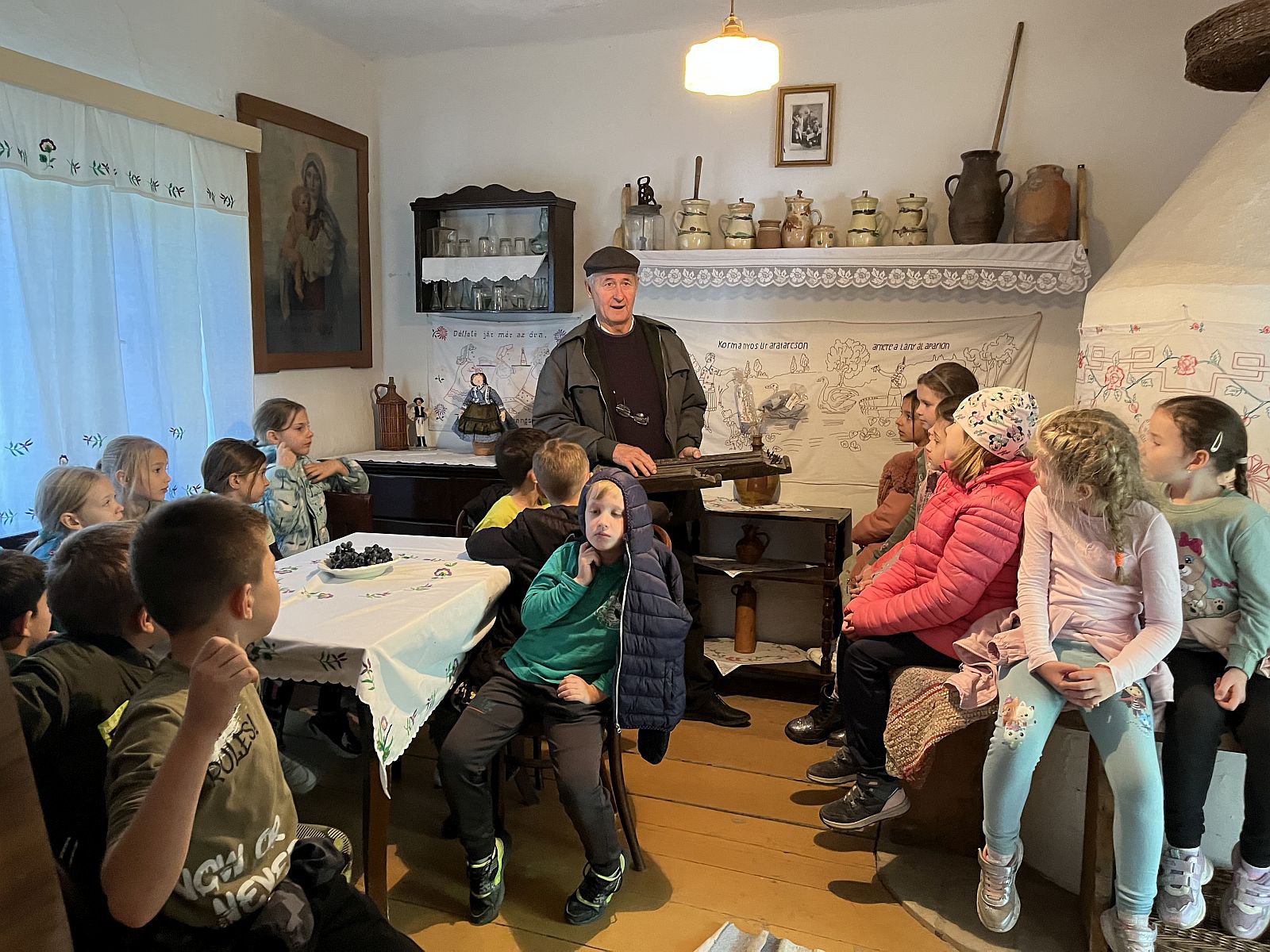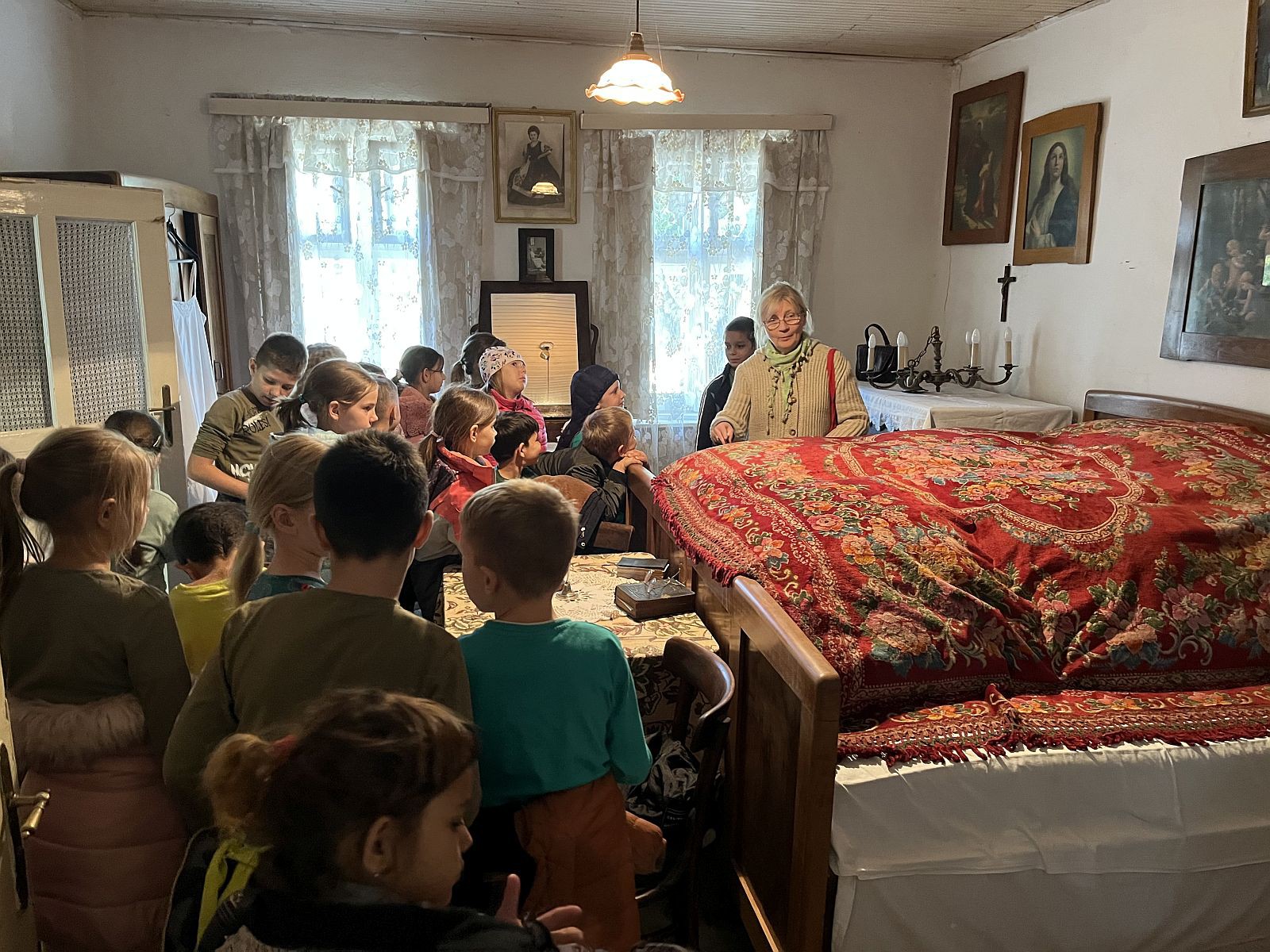 Gospodin Časnji Imre i gospođa Magda su dočekali našu grupu i pokazali nam lepo uređene, autentične seoske kuće. Njihove uređene sobe i predmete koju su se koristili. Zanimljive i poneke nama nepoznate predmete su nam predstavili, kao što je na primer berilica kamilice, alat za pravljenje krova od slame. I takozvana čista soba je bila zanimljiva, mnogi su prvi put videli i čuli za ovu prostoriju. Na kraju smo probali keksiće ispečene u pekaču napravljenom od livenog gvožđa i razgovarali smo uz čaj. Takođe smo isprobali i igralište u dvorištu muzeja.