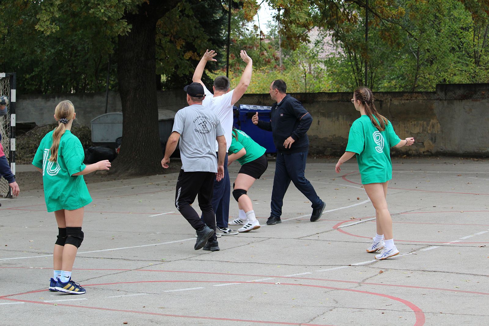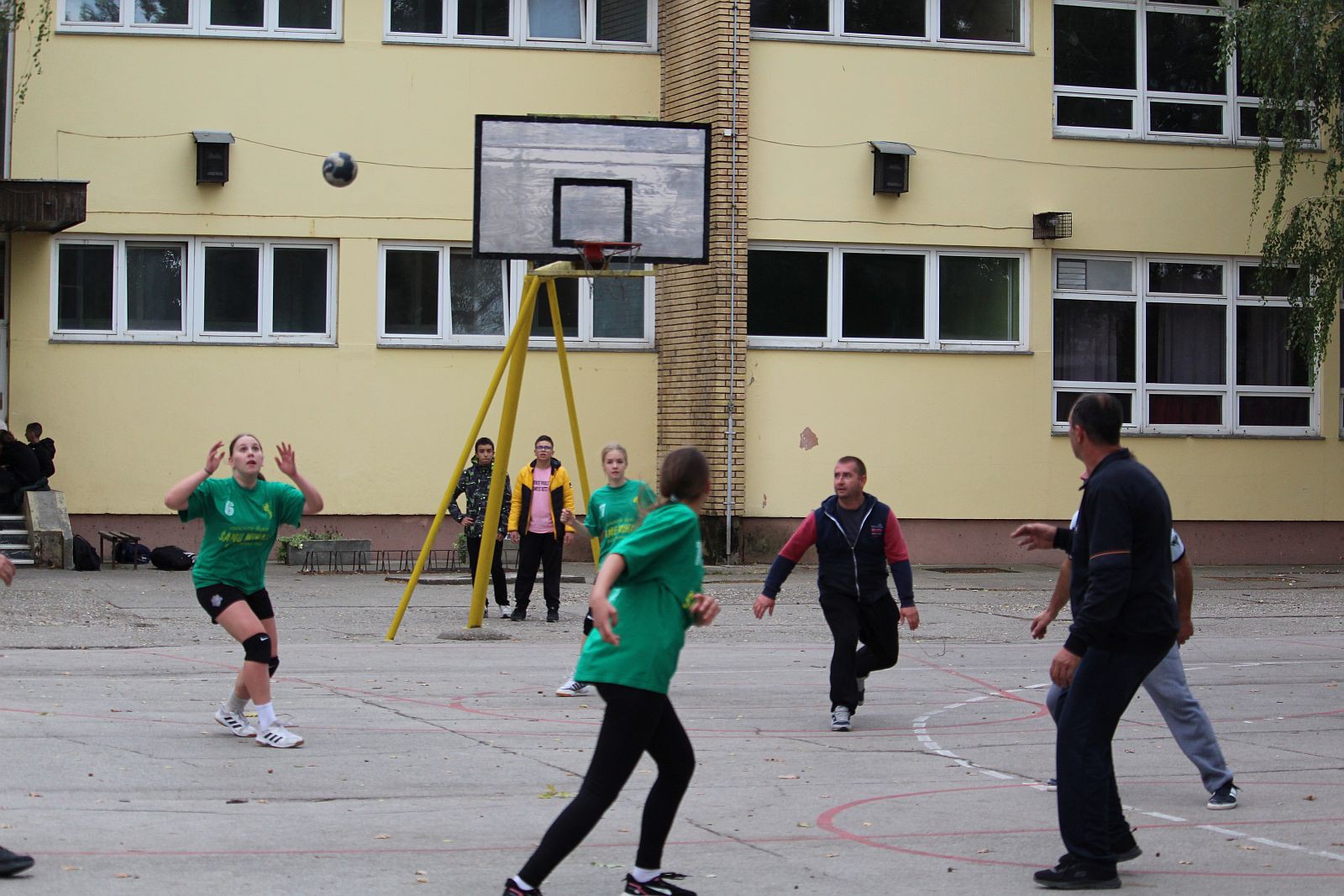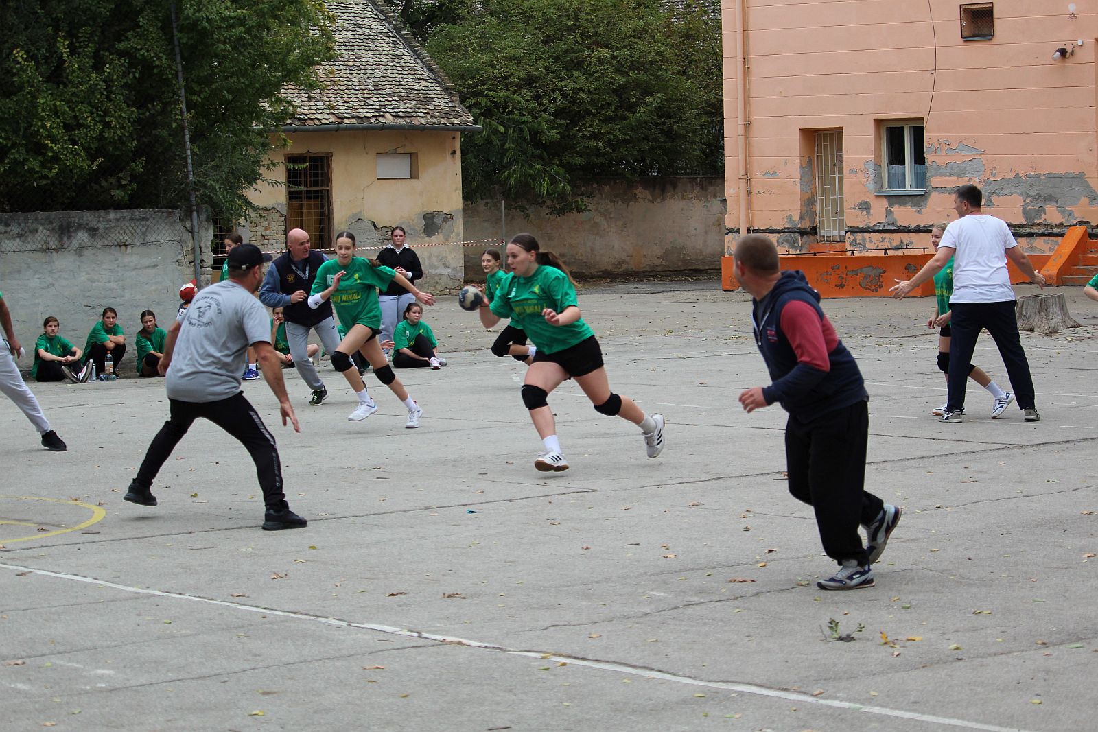 Utakmica se igrala u dva poluvremena, po regularnim pravilima Rukometnog saveza Srbije. Pored malobrojne publike učenika škole prisustvovali su i roditelji i bivši učenici, sada već srednjoškolci. Puno lepih akcija sa obe strane i lepih golova, za dobro raspoloženje je bio zadužen školski di-džej Levi ( učenik osmog razreda, Levente Šarnjai). Škola je obezbedila i prisustvo hitne pomoći, medicinsku sestru Agotu Bovanovič, koja je na svu sreću samo uživala u utakmici i nije bilo potrebe za intervencijama. Krajnji rezultat utakmice je bio 14:13 u korist ekipe roditelja. Sudija susreta je bio nastavnik Karolj Božović, koji je nepristrasno delio pravdu na utakmici. Slike je priredio nastavik matematike, Kiš Čaba. Posle završetka utakmice u staroj zbornici je priređena mala zakuska i piće za učesnike utakmice. Zahvaljujemo se svim učesnicima, roditeljima na učešću na utakmici, sledeći susret je zakazan za decembar mesec (Božićna utakmica). |