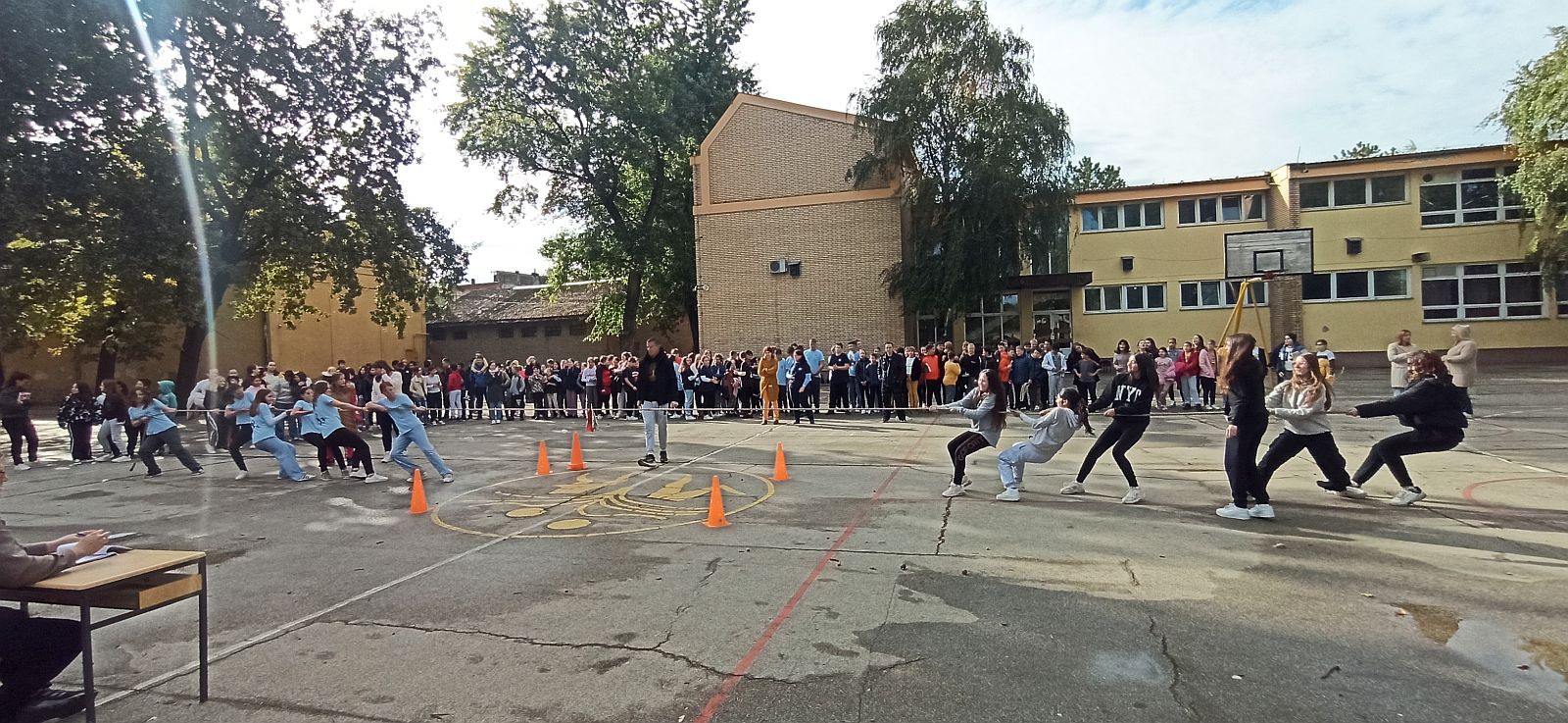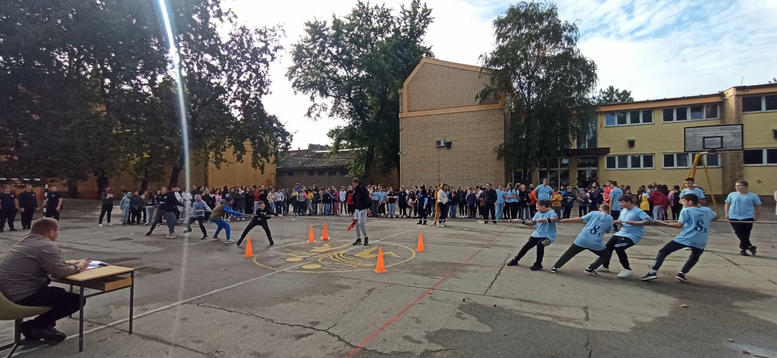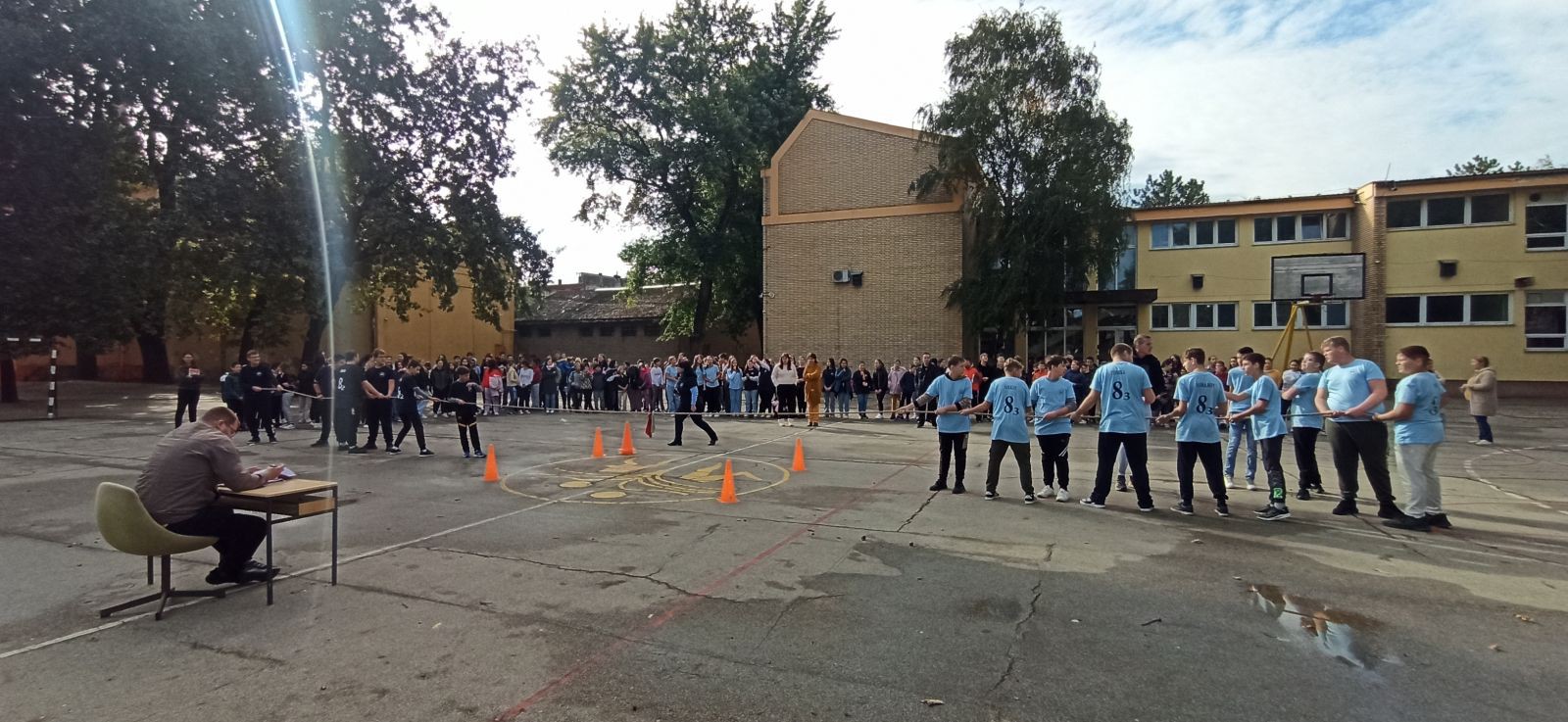 Po sunčanom i za ovo doba godine prijatnom danu, nastavnici fizičkog vaspitanja su, uz pomoć dežurnih nastavnika i učenika, članova dečjeg parlamenta, pripremili teren u školskom dvorištu obeleživši ga markerima, da bi takmičenje moglo da se održi po svim pravilima. Takođe, dečji parlament je pomogao i pri realizaciji takmičenja.